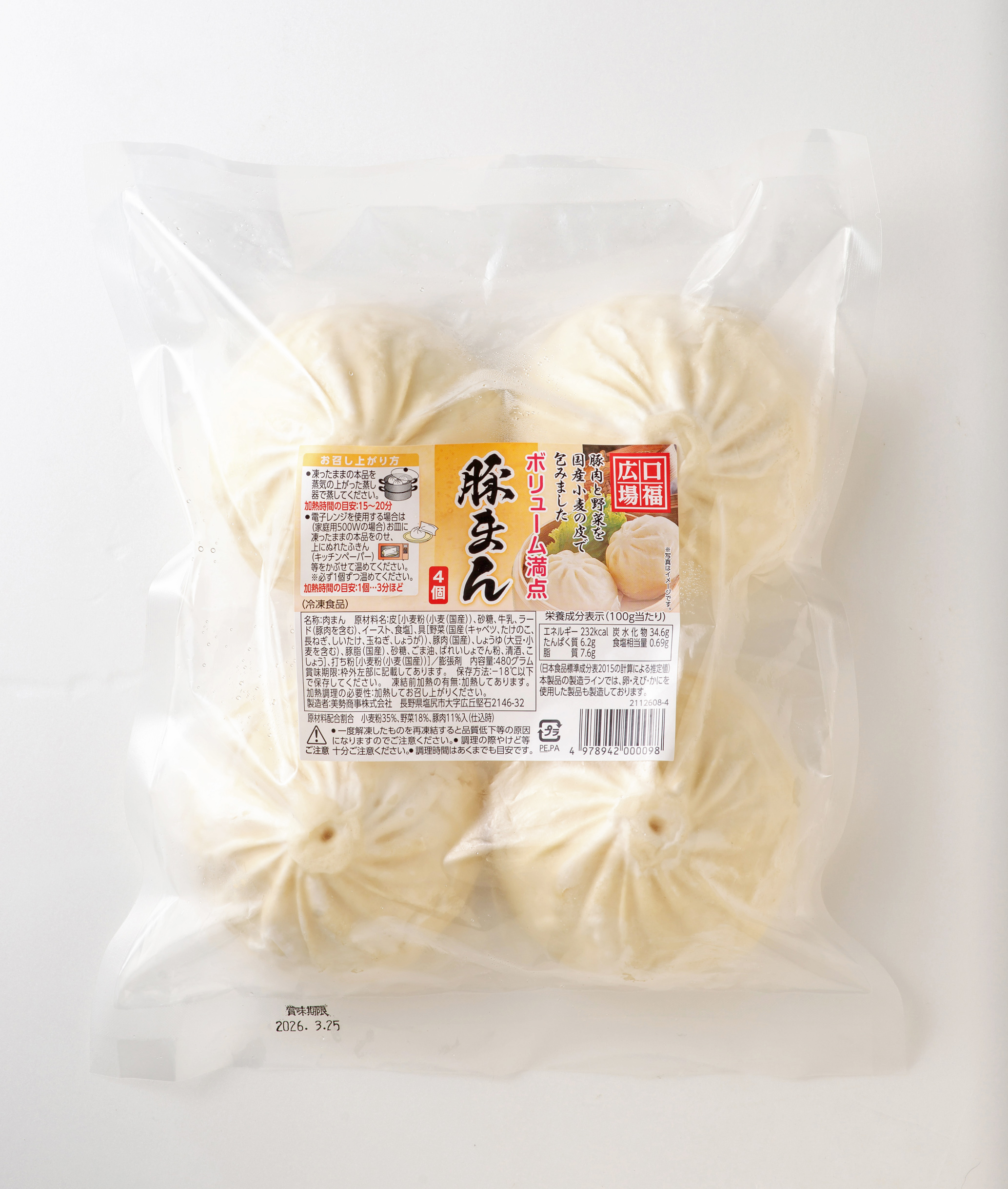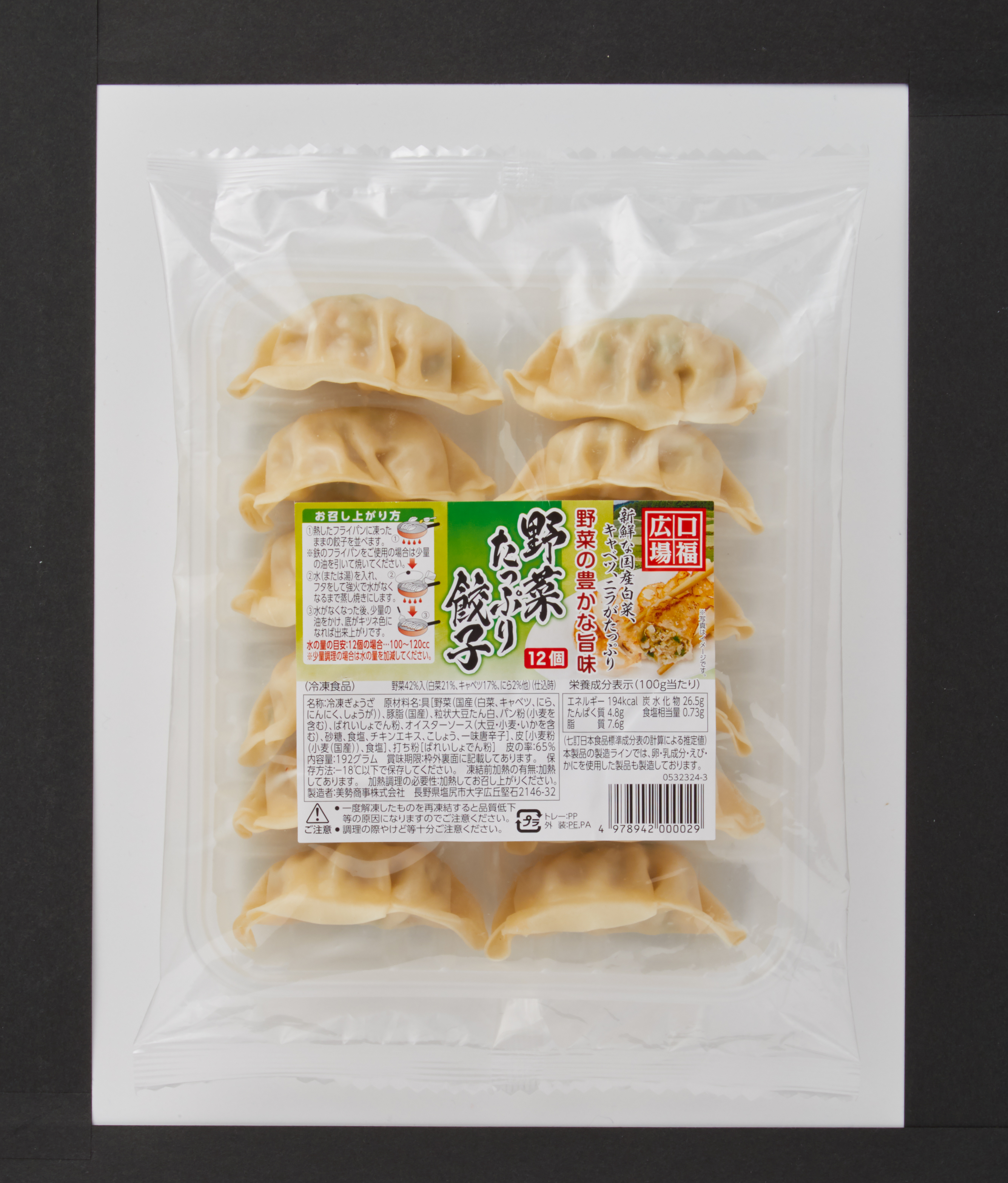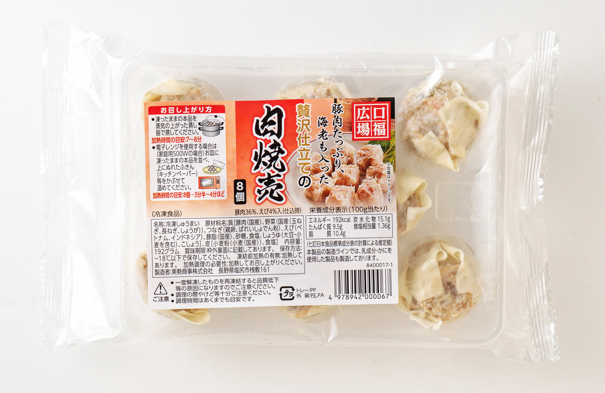 ●内容/野菜たっぷり餃子192g(12個)、ひとくち餃子180g(20個)、海老ワンタン150g(15個)、豚まん480g(4個)、肉にらまんじゅう180g(6個)、さつまいも蒸しパン180g(6個)、肉焼売192g(6個)