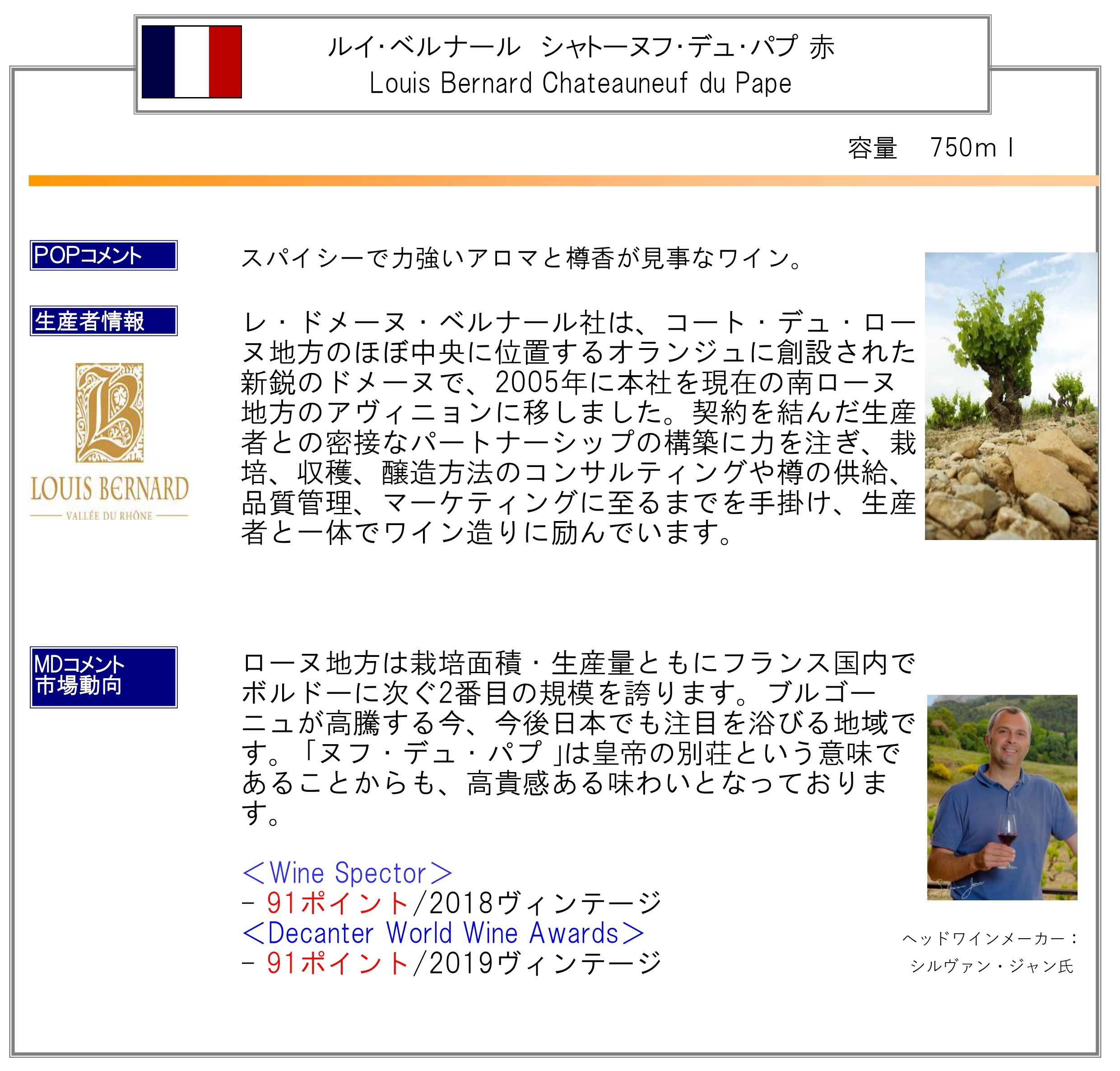 ●原産国・地方・地区等:フランス ローヌ地方 シャトーヌフ・デュ・パプAC