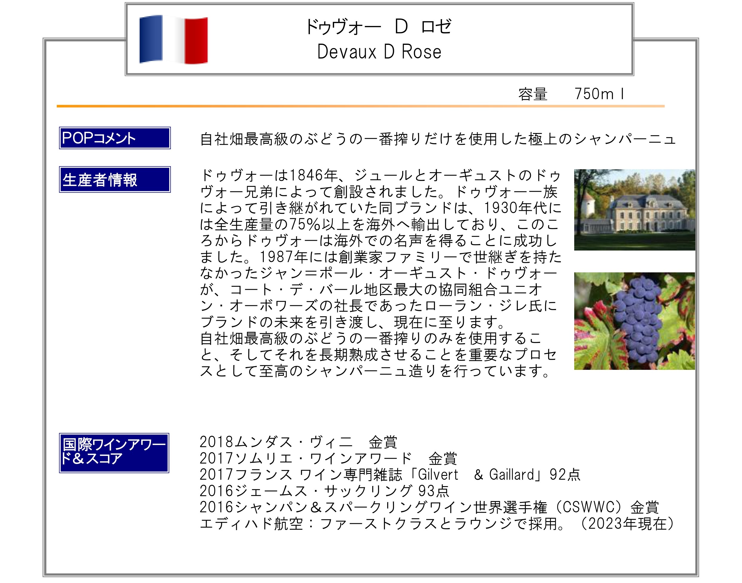 ●原産国・地方・地区等:フランス シャンパーニュ地方 シャンパーニュ