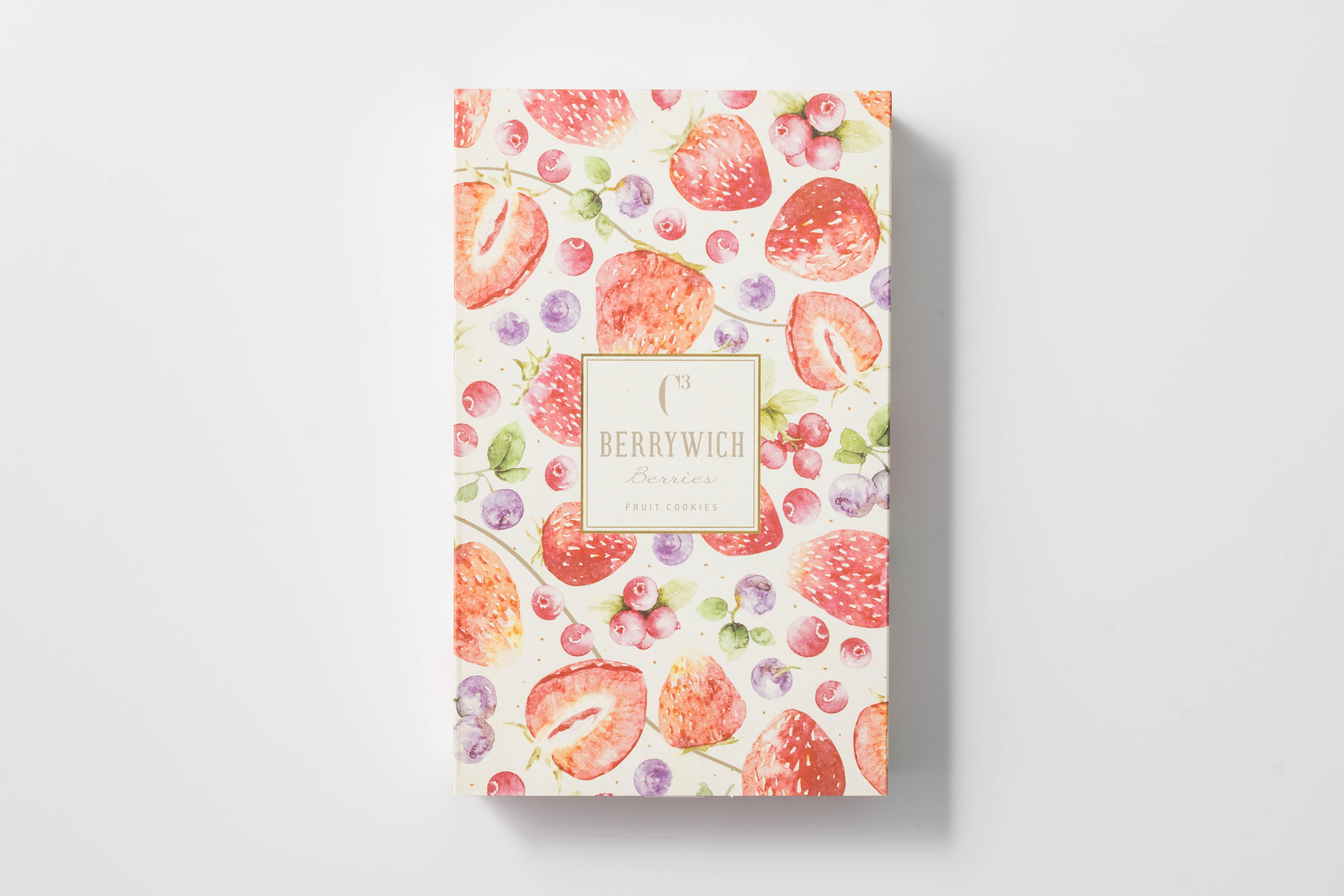 シーキューブの定番品。3種のベリーを使った贅沢で華やかなサブレ。生菓子のように華やかな見た目に仕上げました。