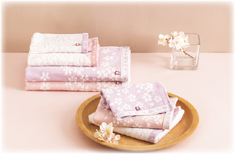 日本人の心に深く根ざした、桜の花模様が施されたタオル。今治産地の「素材選び、織り、染め、後処理」に卓越した職人技が込められた、優しく柔らかな風合いのタオルブランドです。